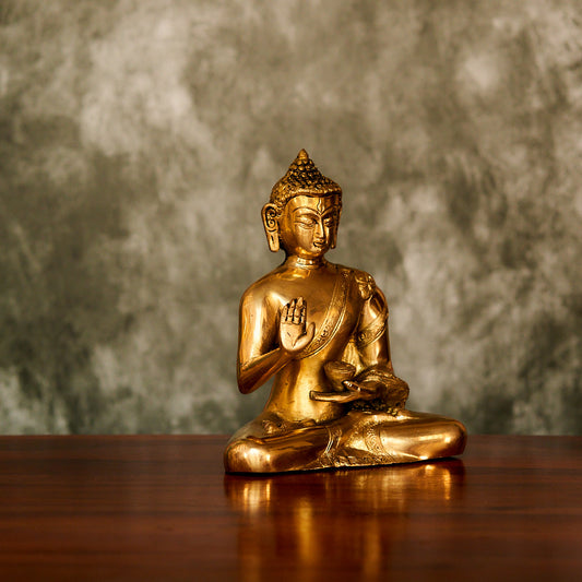Brass Buddha Statue with Kalpavriksha, 7", Antique Polished