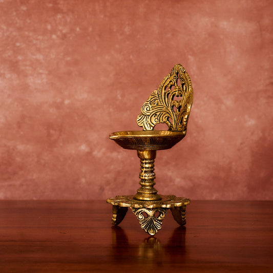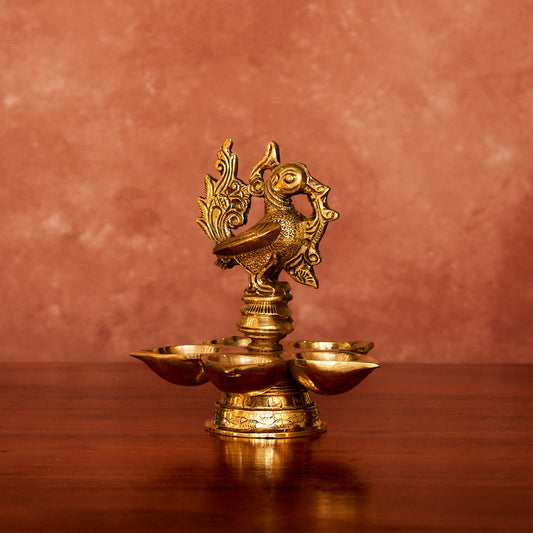 Brass Peacock Panch Diya 5.5" with Antique Polish