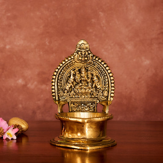 Brass Gajalakshmi Diya 6.5" with Antique Polish
