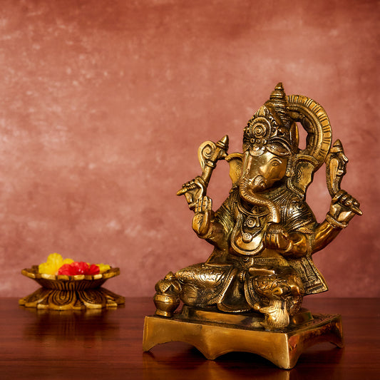 Ganesha Brass Idol 5" with Antique Polish and Stonework