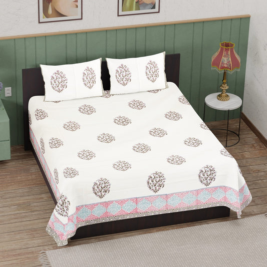 Botanical Bliss Hand Block Printed Cotton Bedsheet