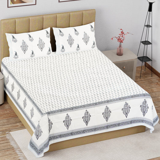 Floral Elegance Hand Block Printed Cotton Bedsheet