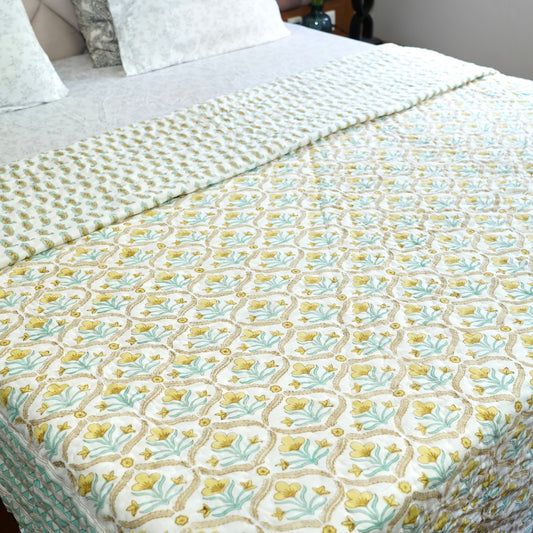 Garden Glow Reversible Hand Block Printed Cotton Quilt